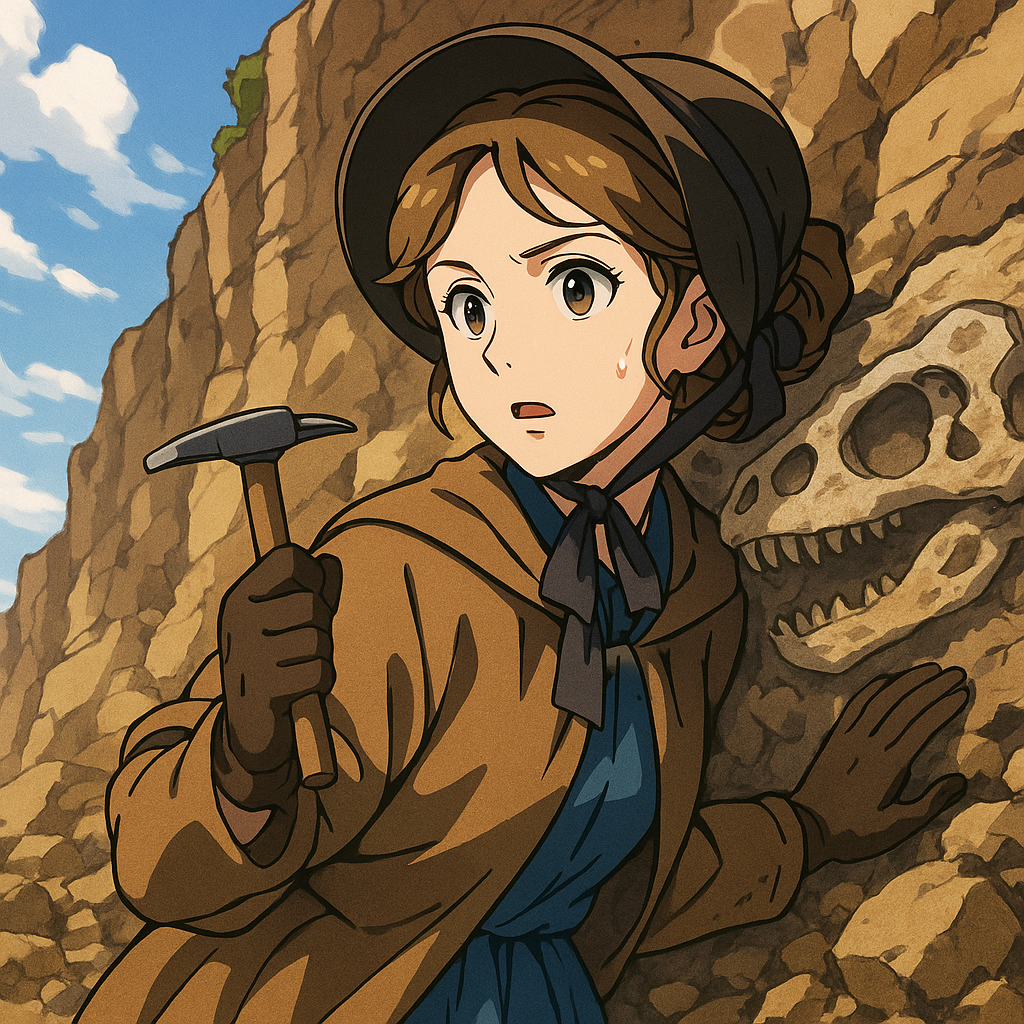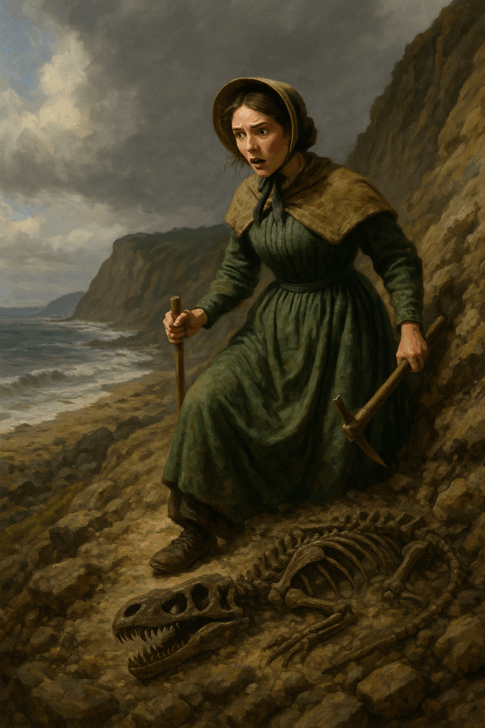 メアリー・アニング(1799–1847)は、ライム・レジスの貧しい家具職人の娘として生まれた。12歳のときに兄と掘り出した魚竜の化石は、彼女の人生を決定づける。