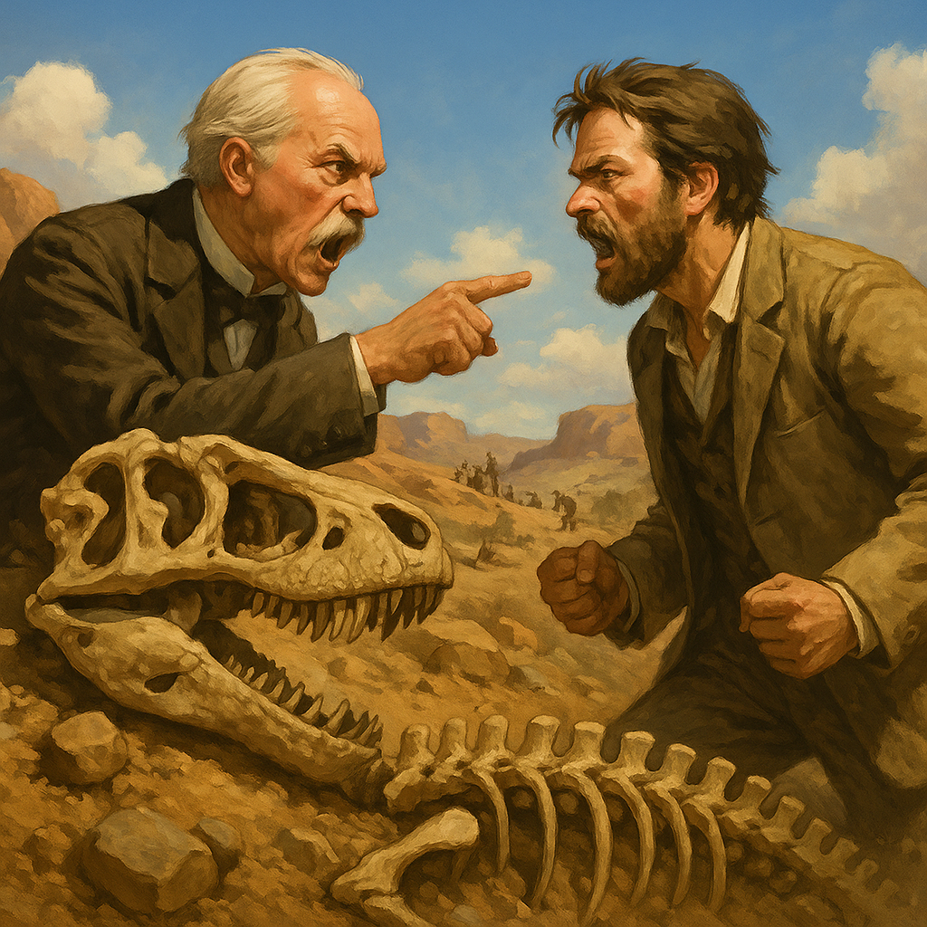1870年代、西部の大地は未踏の化石宝庫だった。マーシュとコープは「誰が先に新種を発表するか」を競い、発掘現場で過激な行為が相次いだ。